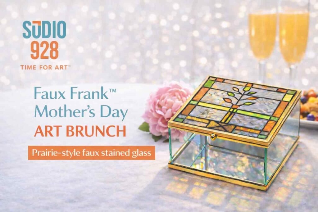 Studio 928 invites you to a light-filled Mother’s Day Brunch Oak Park experience that pairs a continental brunch with our signature Faux Frank™ easy stained glass workshop.