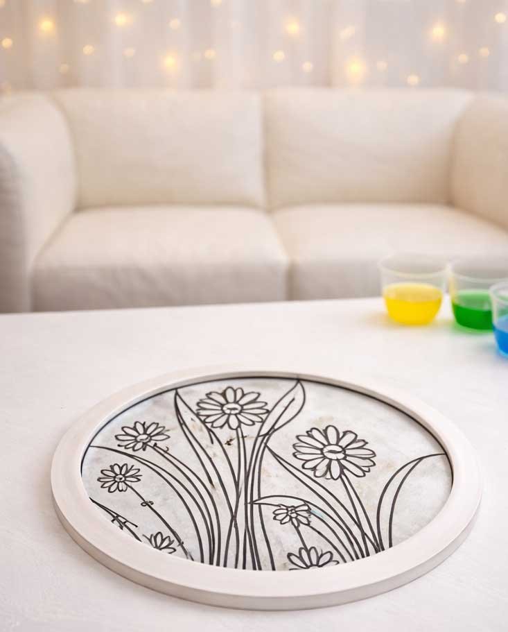 This process allows the faux stained glass to fully set, preserving clarity, color, and longevity.
