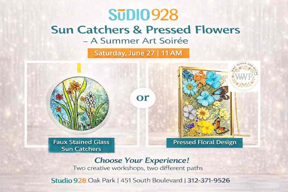 Join a pressed flower workshop in Oak Park where you’ll create a custom suncatcher or design a framed pressed flower display.